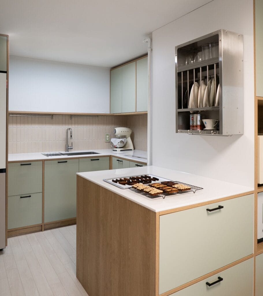 클래식하면서 따뜻한 느낌의 우드 주방이에요. 물이 보글보글 끓고 맛있는 냄새가 나는 포근하고 아늑한 주방의 모습을 생각한다면 우드와의 조합은 언제나 옳지요.