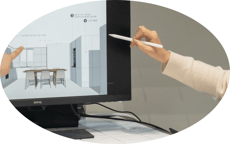 필요시 현장 파악 및 간단한 고객 상담을 위해 디자인 매니저가 현장에 방문합니다. 이후 현장 상황에 따른 수정된 견적서를 전달드릴 수 있으며, 자재 확인이 필요한 경우 라운지에 방문하시면 확인이 가능합니다.