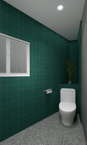 좁은 욕실일 수록 다양한 인테리어 용품들을 사용하기 어렵기 때문에 타일의 컬러로 포인트를 주었습니다. 욕실에 흔하게 사용되는 컬러가 아닌 과감한 다크 그린 컬러를 사용해서 보다 특별하고 감각적인 공간이 완성되었어요.