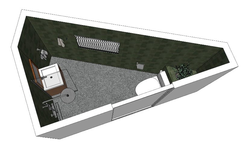 앨리스의 욕실은 일반적인 아파트나 빌라처럼 직사각형 형태가 아니었어요. 한 쪽으로 좁아지는 삼각형 모양으로 되어 있다 보니 더욱 더 디자인에 대한 고민이 많았던 곳이었습니다.