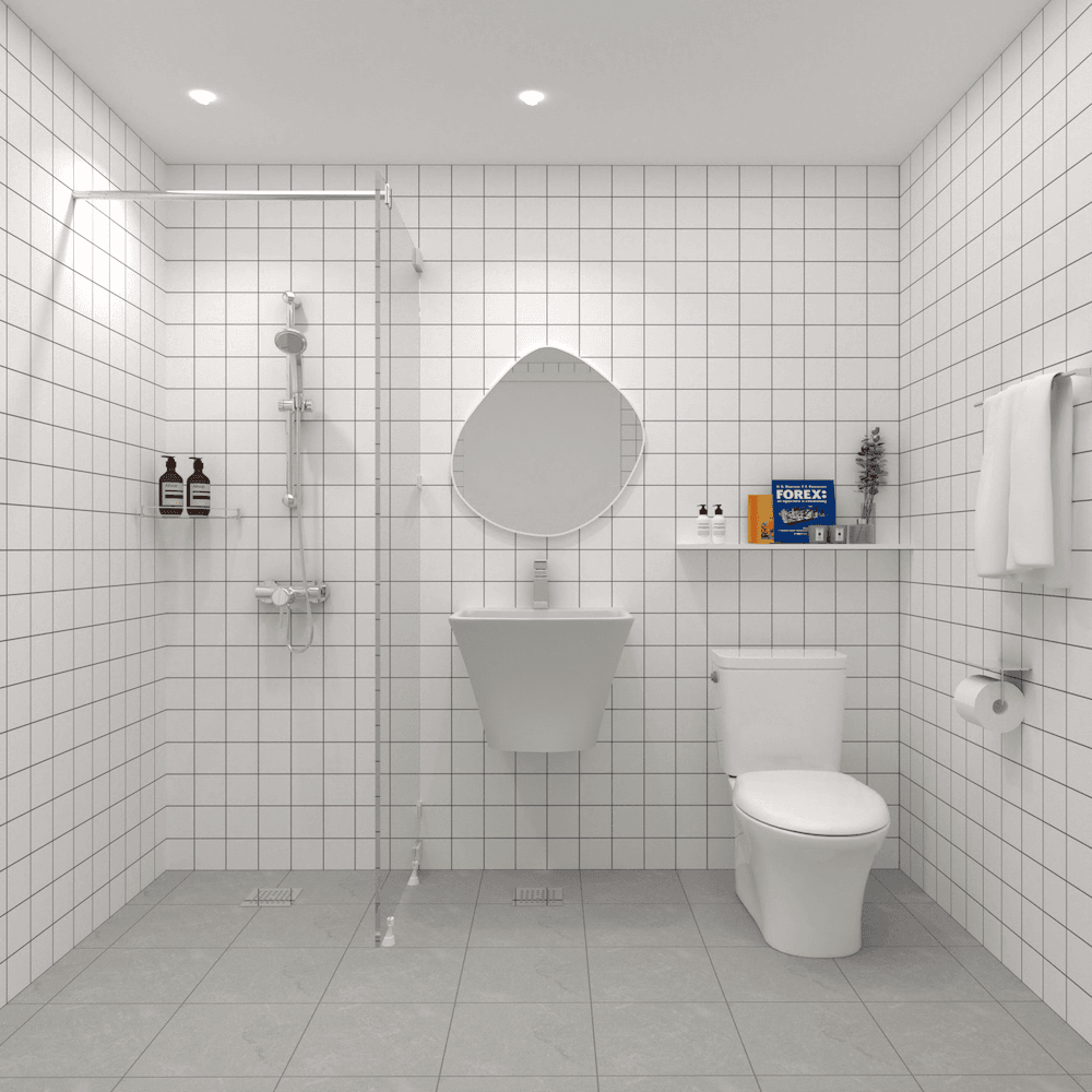 그래서 저희 빌더랜드 팀은 욕실의 크기와 원하시는 디자인과 상황에 맞추어서 가성비 좋은 B1013 패키지를 추천해드렸어요. 가격이 좋으면 디자인이 나쁠것이라는 편견을 깬 트렌디하고 감각적인 욕실이 완성되었어요.